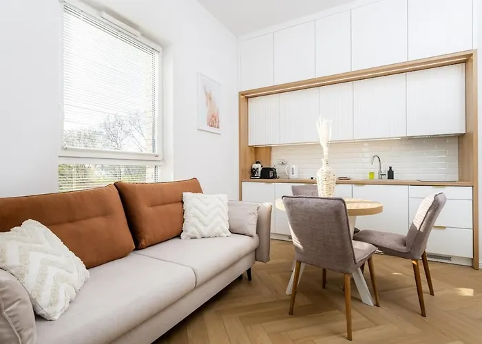 The 36 m² Wiktoryn 21 Citysphere Premium Suite 2 Warsaw provides swift access to various city landmarks, such as E.Leclerc Aleje Jerozolimskie, located approximately a 5-minute walk away. This 1-bedroom apartment boasts a terrace and complimentary private parking on site.